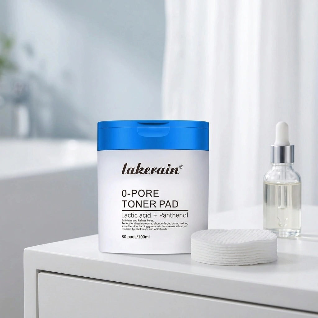 Our Lakerain 0-Pore Toner Pads are pre-soaked exfoliating and refining pads designed to visibly reduce pore size, control oil, deep clean, and smooth skin texture. Infused with Lactic Acid and Panthenol, they deliver professional-grade results right to your home.